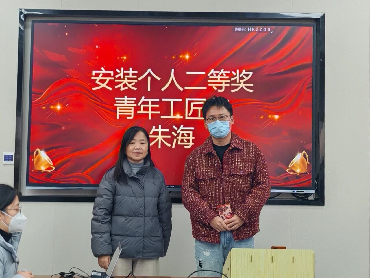 总经理夏丽波为个人二等奖获得者朱海颁奖;
