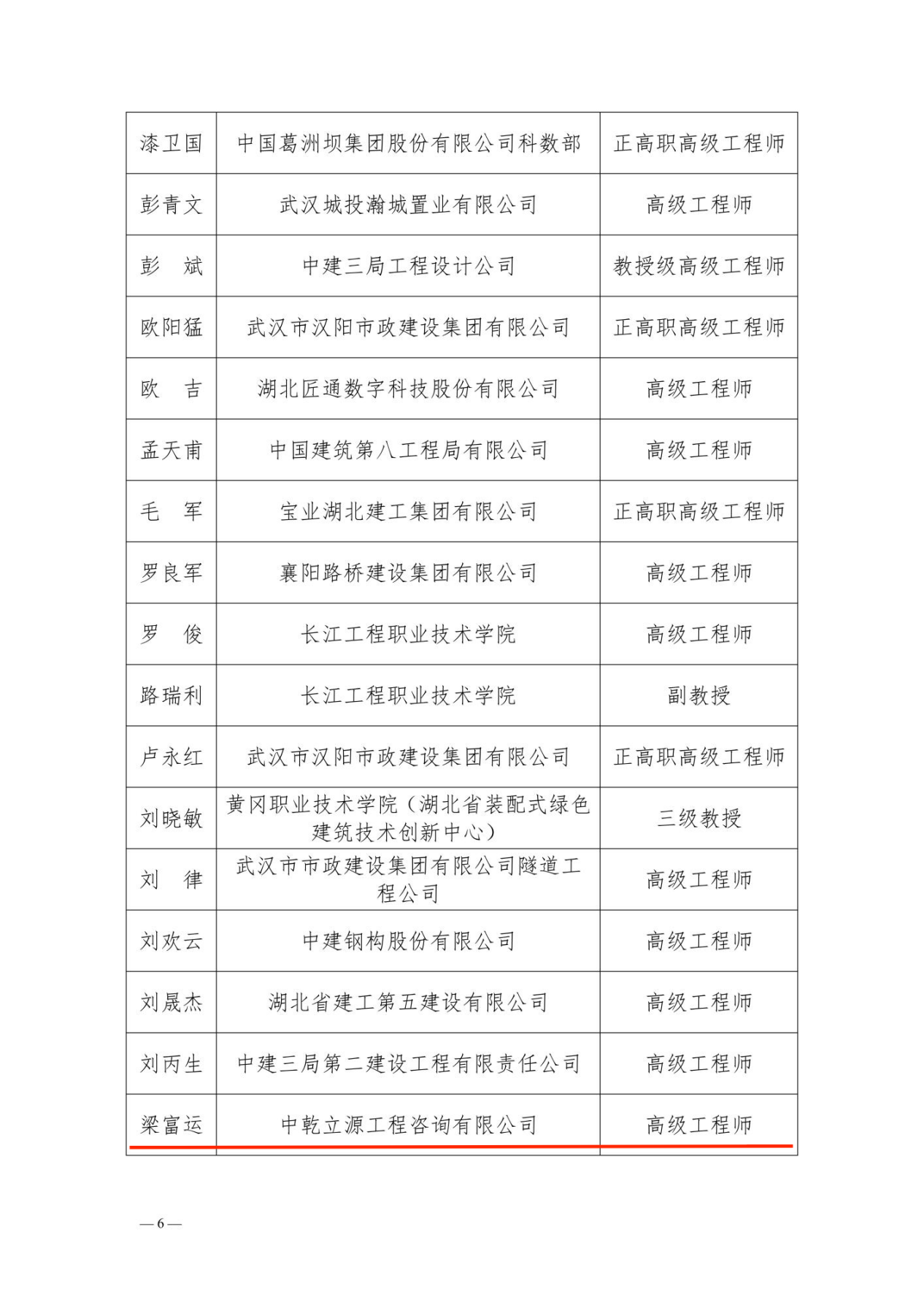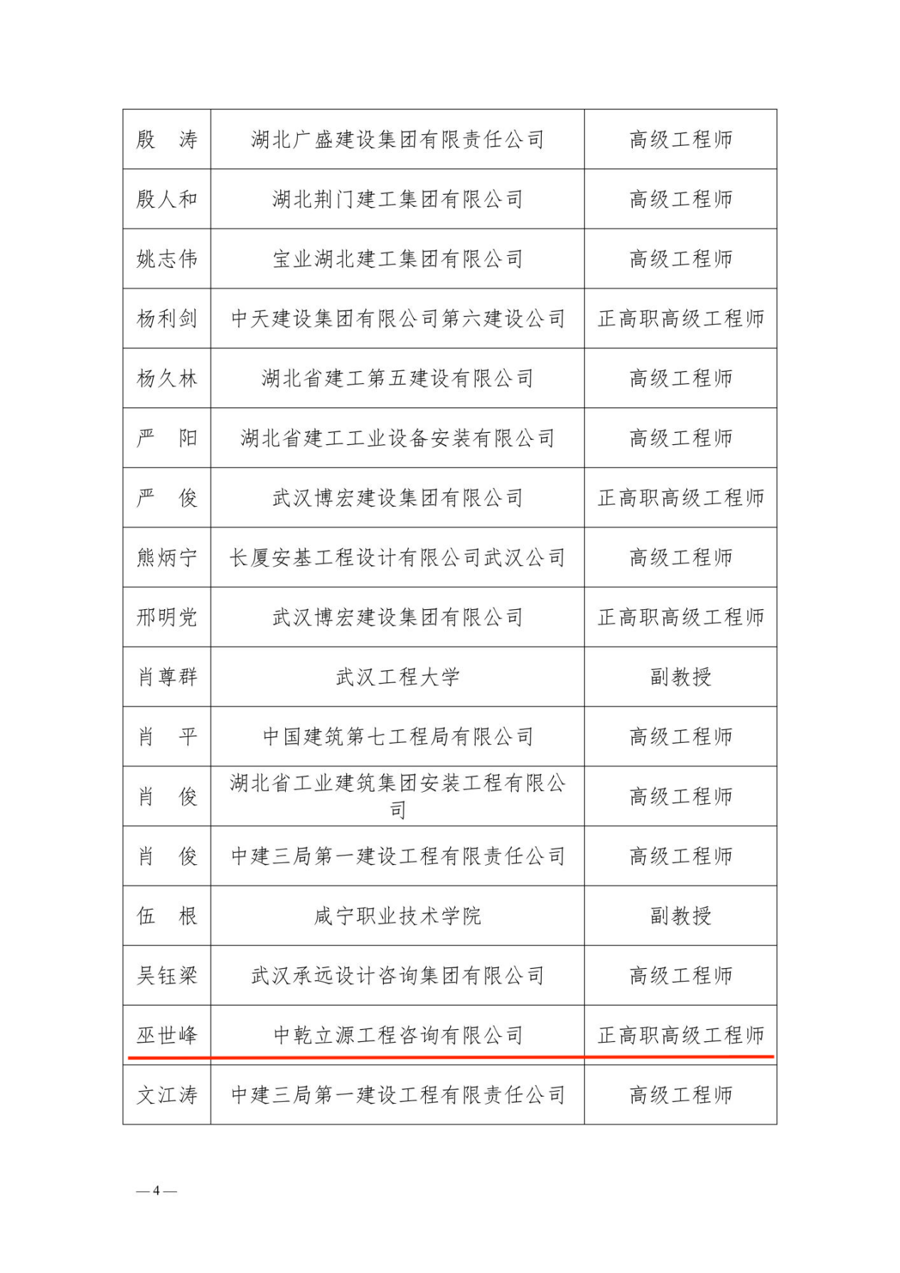 近日,湖北省建筑业协会发布《关于公布湖北省建筑业协会团体标准专家、企业文化建设专家的通知》(鄂建协﹝2025﹞69号),经个人自愿申请、所在单位推荐、协会组织严格审核,并经湖北省建筑业协会第八届专家委员会第二次全体会议审议,产生湖北省建筑业协会团体标准专家98名、工程建设企业文化建设专家12名。中乾立源工程咨询有限公司董事长巫世峰、总裁梁富运成功获聘湖北省建筑业协会团体标准专家。