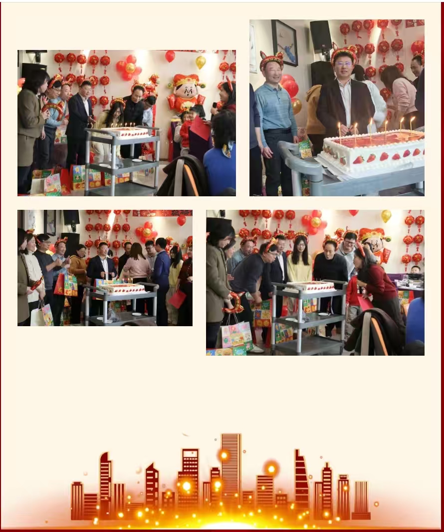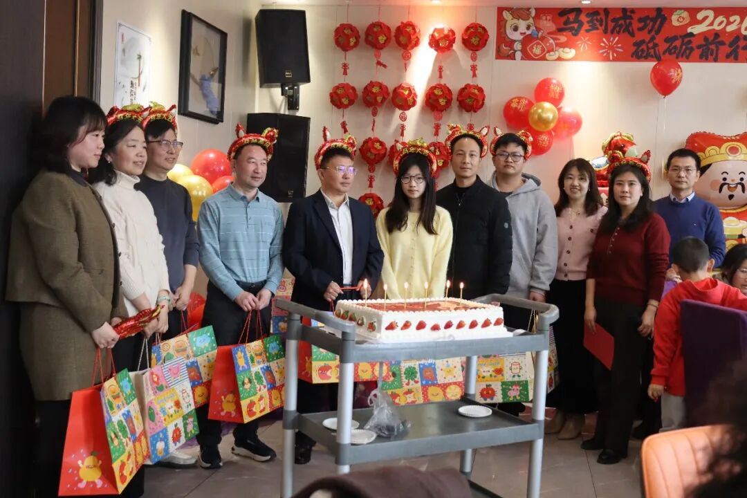 致辞结束后,温馨的生日会环节缓缓拉开帷幕。现场灯光渐暗,定制生日蛋糕被缓缓推上,欢快的《生日快乐》歌响起,氛围感拉满。第一季度的寿星们围站在蛋糕前,闭上眼睛默默许下新一年的美好心愿,随后一同吹灭蜡烛,分享这份甜蜜与喜悦。公司还为每位寿星精心准备了专属生日礼物,这份贴心关怀让寿星们深切感受到了中乾立源大家庭的温暖,现场掌声与欢呼声此起彼伏。