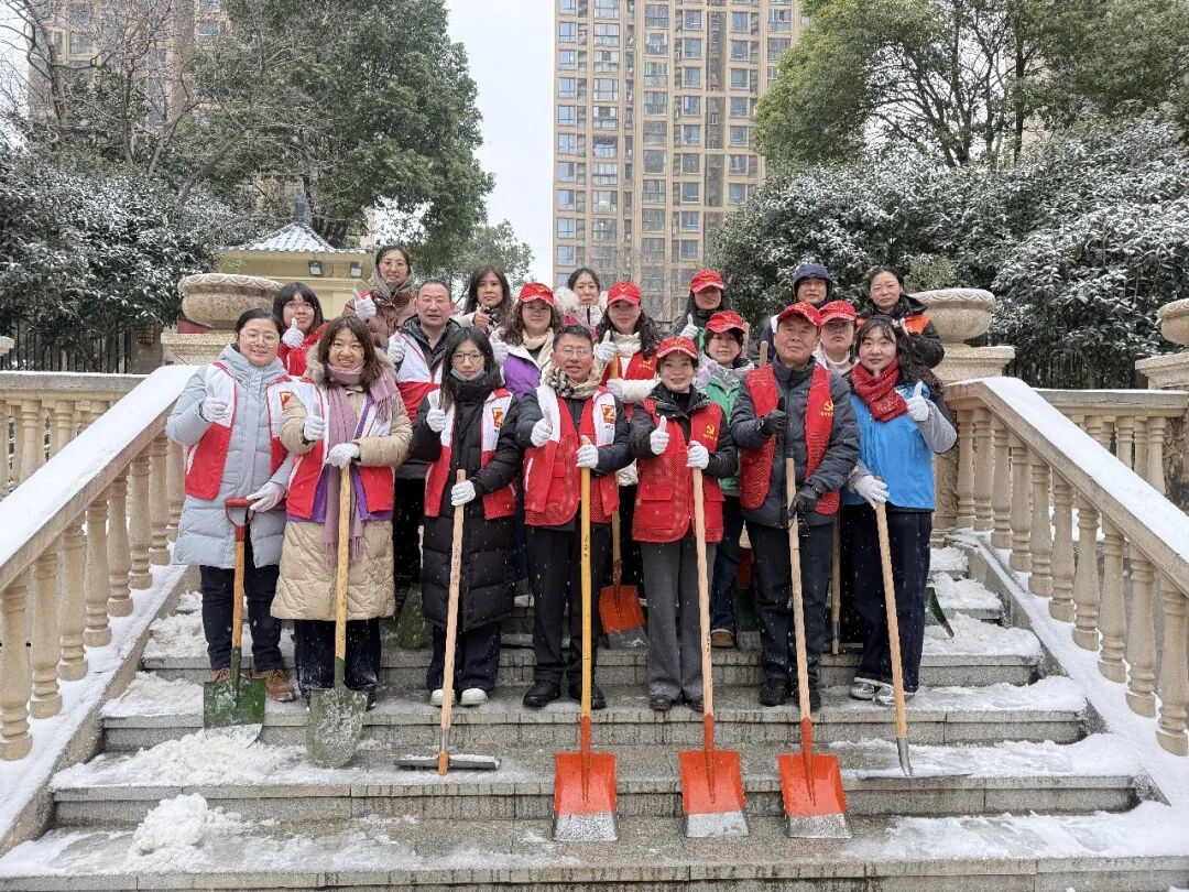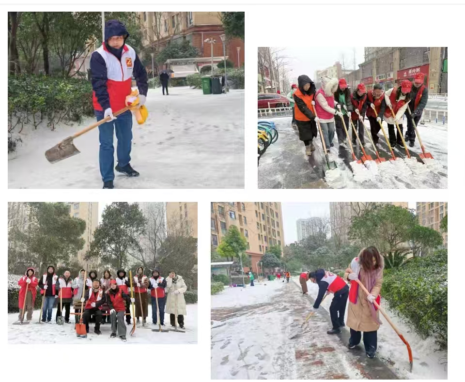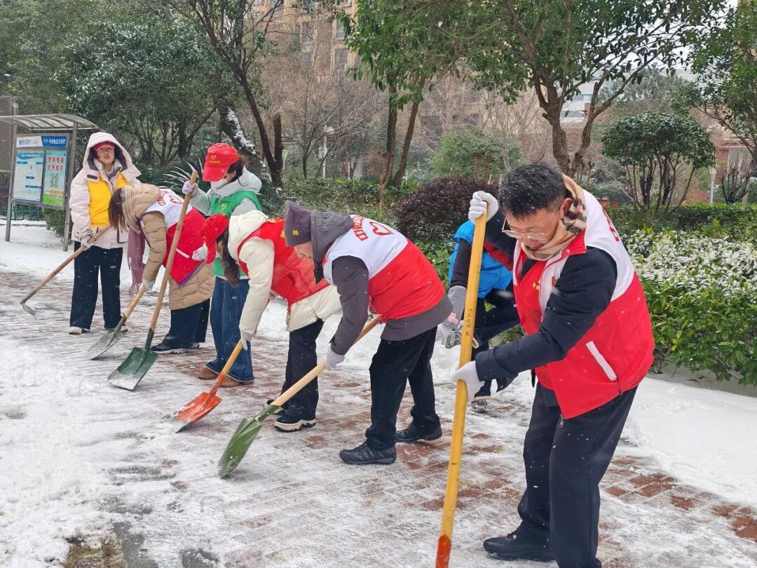 抵达武昌府社区后,党员志愿者们迅速与社区工作人员汇合,大家手持铁锹、雪铲等工具,分工明确、默契配合,对社区主干道、人行步道、单元门口等群众出行高频区域的积雪和薄冰展开集中清理。凛冽寒风中,志愿者们不畏严寒、挥汗如雨,忙碌的身影穿梭在皑皑白雪间,用双手为居民开辟出一条安全通畅的“便民路”。此次联动作业,不仅高效完成了扫雪除冰任务,更生动展现了“社企携手、共建共享”的新模式,赢得了社区居民的一致好评。