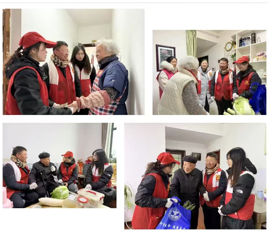 在完成扫雪除冰工作后,董事长与社区书记一同带队,逐一走访社区高龄、独居老人家庭,将采购的新鲜蔬菜送到老人手中,详细询问老人的身体状况和生活需求,叮嘱他们雪天路滑尽量减少外出,注意居家安全,用贴心关怀让老人们在寒冬中感受到浓浓的暖意。