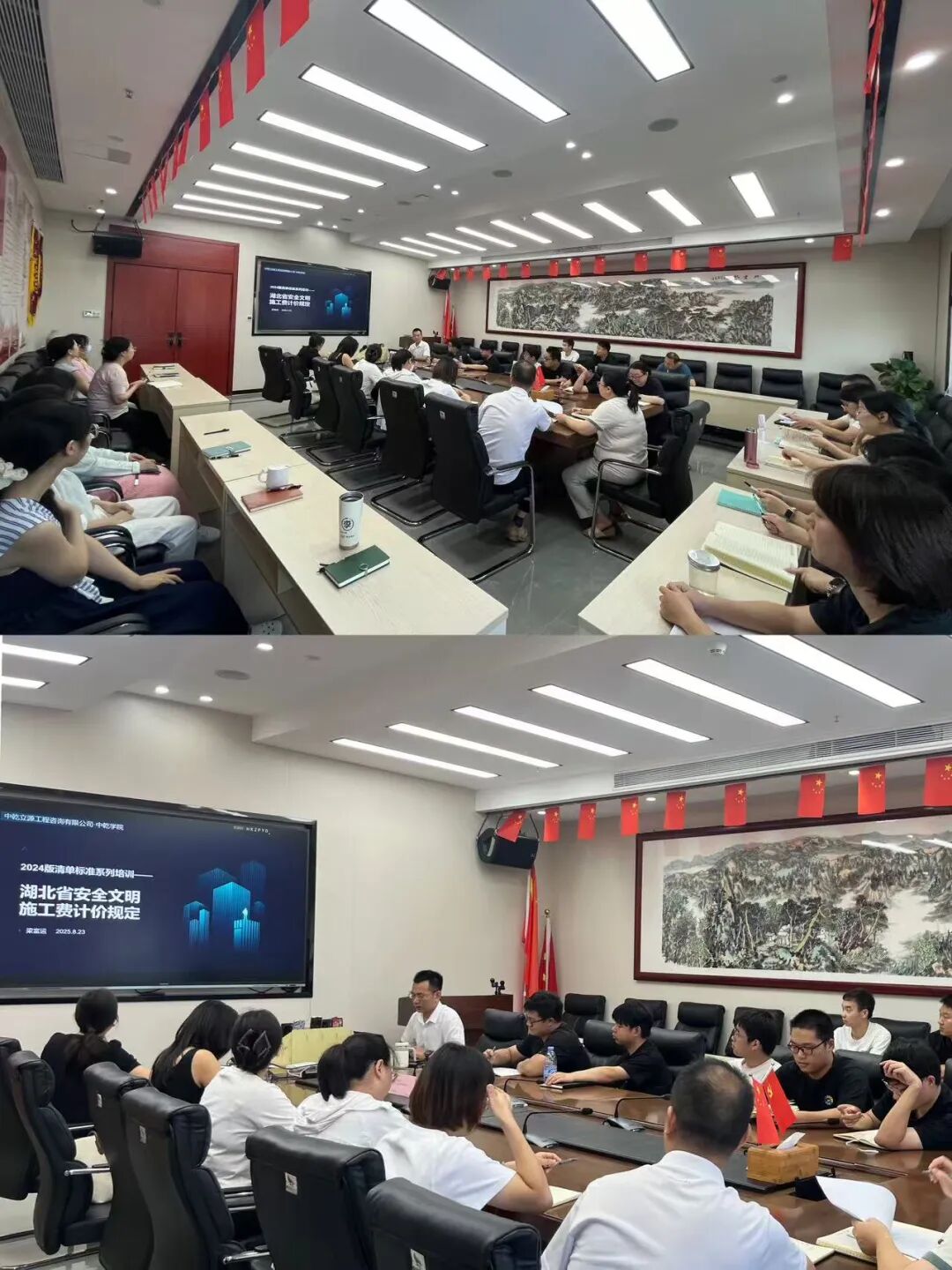 自新标准发布以来,公司积极组织全员开展系统性学习,深入研读标准条文,并结合湖北省住建厅组织专家编制的《应用与实务》成果,重点围绕“24清单计价标准的变化与实务解析”、“湖北省安全文明施工费计价规则”、“24清单计价表格及计价程序”“湖北省安文费11号文”等核心内容进行了多轮专题培训。通过专家解读、案例推演、场景模拟等方式,深度剖析新标准在项目招标、合同签订、过程结算等环节的应用要点,强化员工对计量规范、费用构成及风险分摊机制的系统性认知。