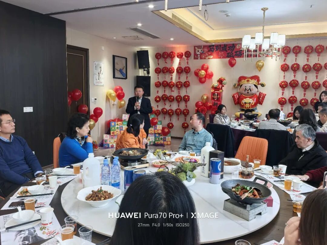 生日会结束后,热闹的年饭正式开始。桌上佳肴飘香、杯中美酒溢情,全体同仁举杯共饮、互道新春祝福。席间,大家畅谈工作点滴、分享生活趣事,欢声笑语此起彼伏,平日里的忙碌与疲惫皆在这场团圆盛宴中悄然消散,这份相聚的暖意更凝聚起愈发强劲的团队向心力。同时,为表达对员工的关怀与感谢,公司还为每位员工发放了春节节礼——“粮油大礼包”,传递新春温暖。